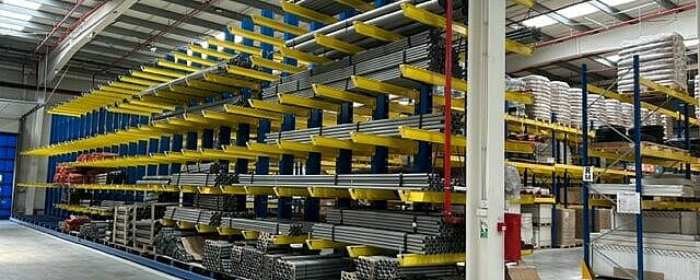 Arabesque, el mayor distribuidor de materiales de construcción de Rumanía, ha ampliado considerablemente su capacidad de almacenamiento: por un lado, aumentando el número de estanterías en los almacenes interiores y exteriores existentes y, por otro, construyendo nuevos almacenes. En Bucarest, por ejemplo, la capacidad de almacenamiento se amplió con un nuevo almacén en 2023: Las estanterías cantiléver OHRA instaladas cuentan con una longitud total de más de 250 metros y una altura de hasta 5.280 milímetros. Además, se reacondicionaron unas antiguas estanterías OHRA para construir nuevos lineales de estanterías con ayuda de extensiones y nuevos arriostrados. El nuevo sistema de estanterías requiere mucho menos espacio que el anterior almacenamiento en el suelo, por lo que Arabesque dispone ahora de capacidad suficiente para ampliar y extender su gama de productos. Esto garantiza que las necesidades de los clientes puedan ser cubiertas de forma fiable en el futuro.