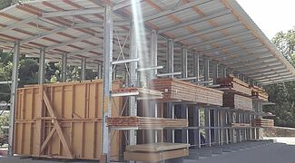 La empresa francesa de carpintería y madera especializada en la construcción de casas con aislamiento Bati-Nature, ha aumentado su capacidad de almacenamiento tanto de materiales de madera como de elementos de pared prefabricados con un sistema especial de estanterías de OHRA. Dos estanterías cantiléver de 24 metros de longitud con brazos de techo integradas forman las paredes de una construcción en forma de nave. Entre ellas queda un espacio transitable de unos 6 metros. OHRA solo necesitó una semana y media para el montaje de este almacén.