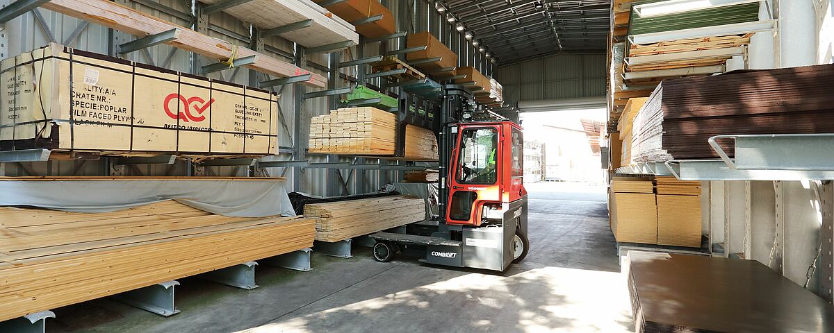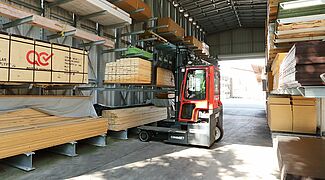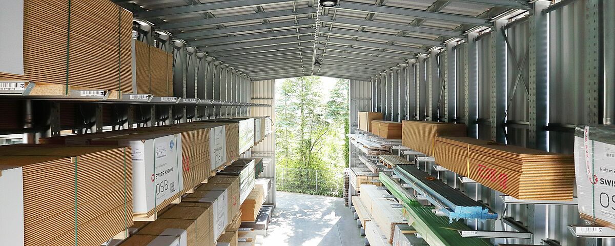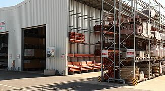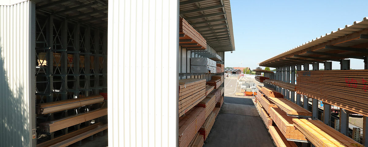 Para ofrecer a sus clientes una mejor visión de conjunto y un acceso más rápido a los artículos de madera, BAUKING decidió almacenar de forma centralizada todos los artículos de madera en la nueva nave autoportante. Una nave autoportante de este tipo, en la que las estanterías actúan como estructura de carga para el techo y las paredes, es mucho más flexible y rentable que un almacén clásico. BAUKING ha proyectado una nave formada por tres lineales de estanterías cantiléver de unos 20 metros de longitud cada una. Las estanterías cantiléver, de más de 7,8 metros de altura, cuentan con siete niveles de almacenamiento.