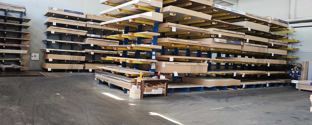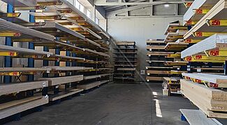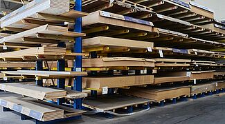 Los bastidores y los largueros de las robustas estanterías están fabricados con perfiles de acero laminado en caliente de alma maciza. El acero laminado en caliente de las estanterías para cargas pesadas cuenta con grandes ventajas en términos de alta capacidad de carga vertical: por ejemplo, los perfiles no se doblan al ser golpeados por las uñas de las carretillas elevadoras. El diseño también permite cargas especialmente grandes en las estanterías.