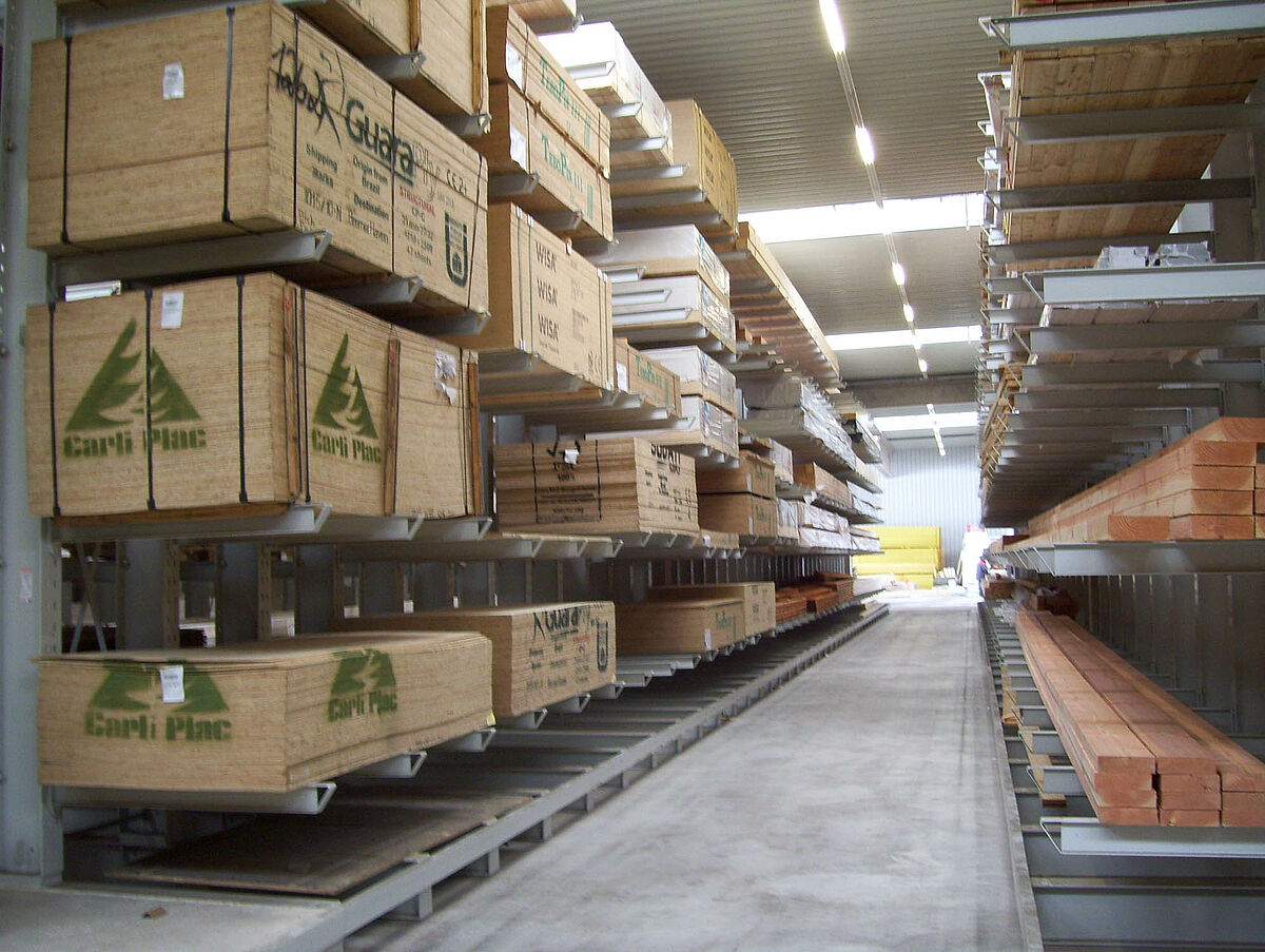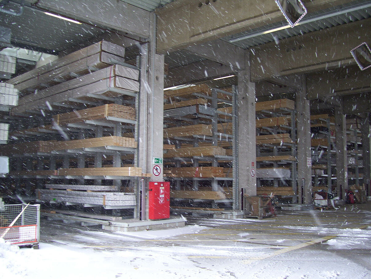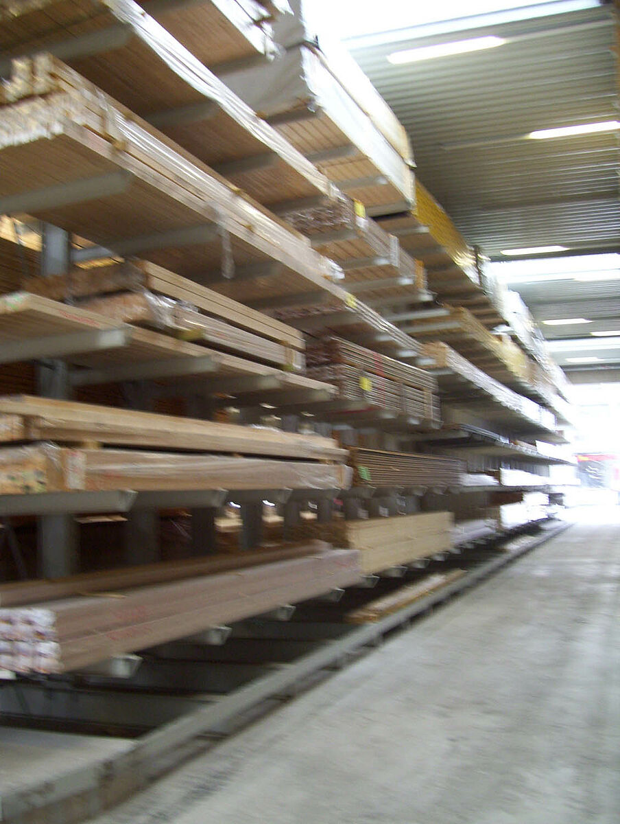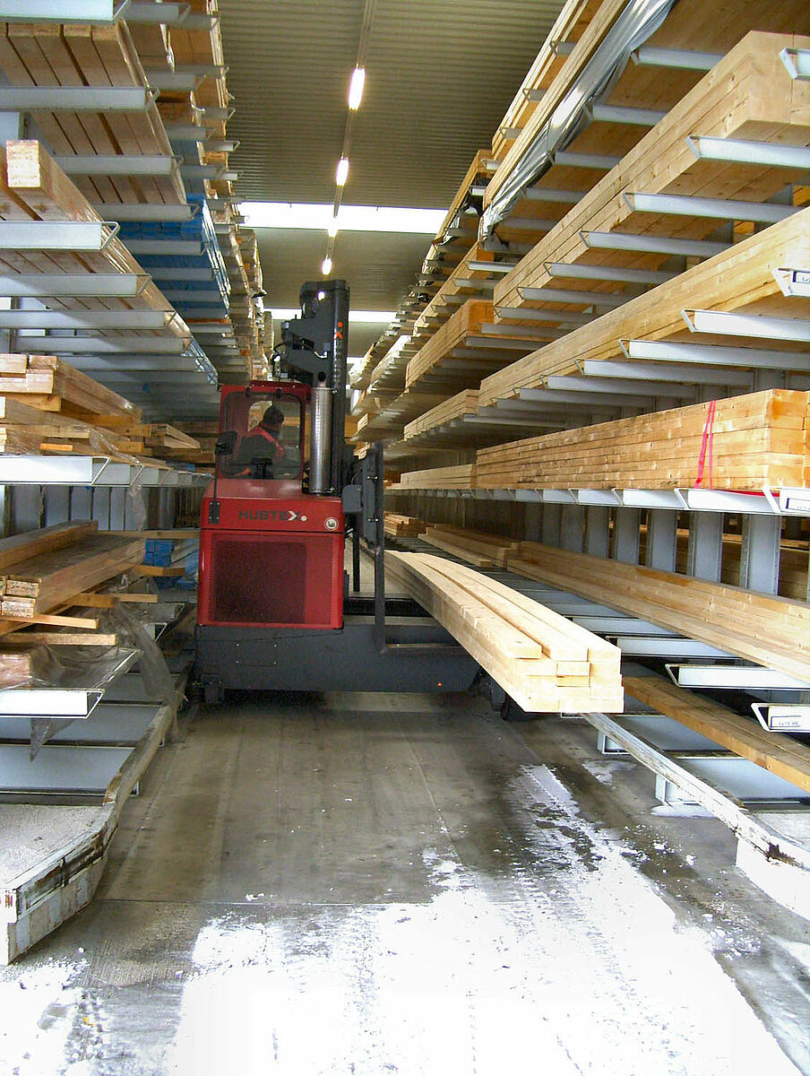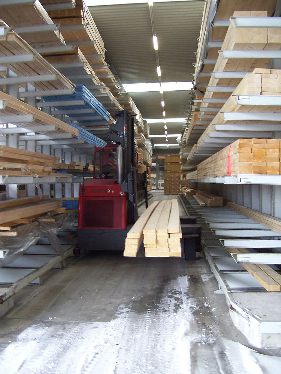 Los especialistas de Kerpen montaron en sólo dos semanas 236 puestos para madera de construcción y madera laminada en hileras de estanterías de 40 y 50 metros de largo y 6,20 metros de alto. En total se crearon 2.800 metros continuos de niveles de estanterías para madera larga. Además se crearon 300 puestos en estanterías para palés y estanterías cantiléver en los cuales se almacenan las mercancías para palés y el surtido básico. En el almacén se opera con dos carretillas elevadoras laterales Hubtex y una carretilla elevadora frontal Linde. Tan sólo en los seis primeros meses después de la puesta en funcionamiento ya se vendieron alrededor de 3.300 metros cúbicos de madera.