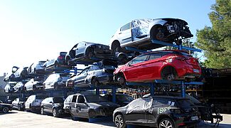 La compañía española de desguaces de automóviles Desguace Alarcón ha ampliado su capacidad de almacenamiento para vehículos fuera de uso con estanterías voladizas de OHRA. Se trata de 40 estanterías exteriores, en las que se pueden cargar automóviles de hasta un peso de 1.600 kg respectivamente, que ahora ofrecen el espacio necesario para que la empresa siga creciendo. Lo más convincente es la flexibilidad de los brazos cantilever regulables en altura: Gracias a ellos no solo se puede ajustar la altura de los estantes según las necesidades, sino que también ceden cuando se golpean con la carretilla elevadora, de manera que se evitan daños en la estantería y en los vehículos almacenados.