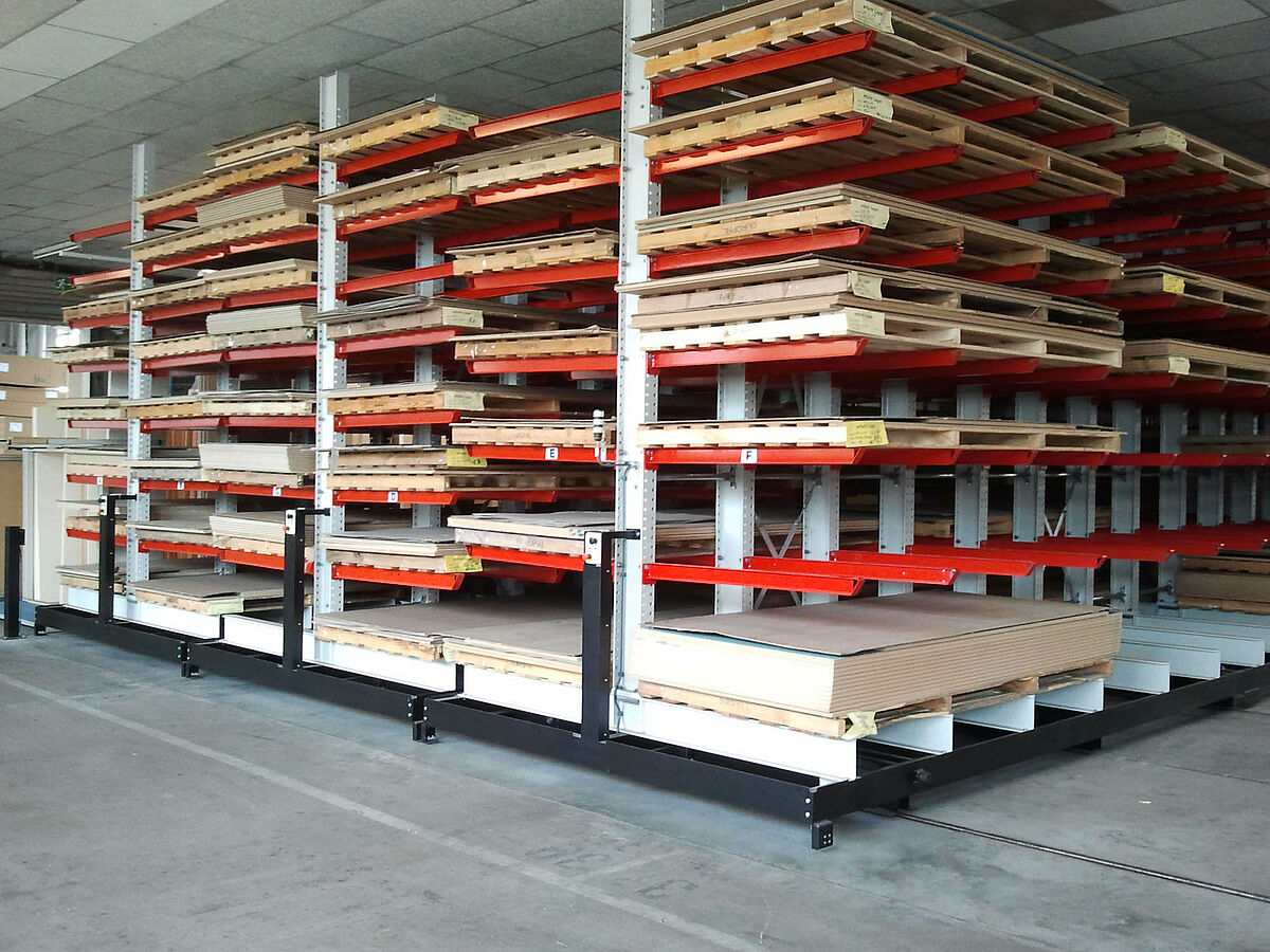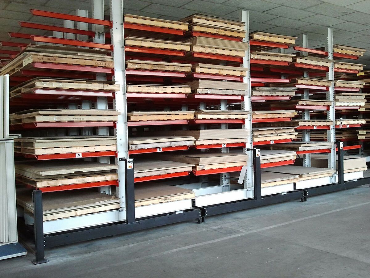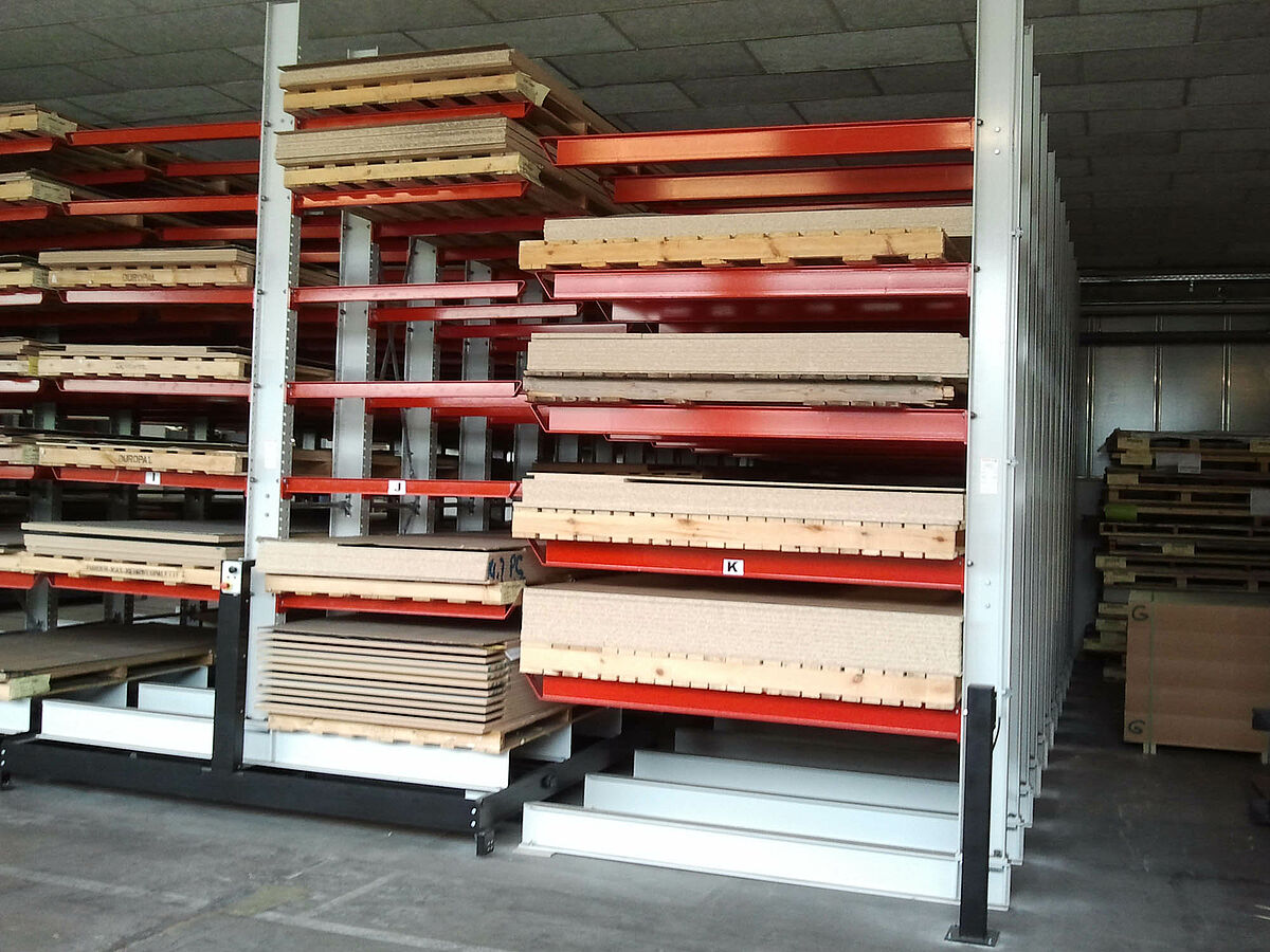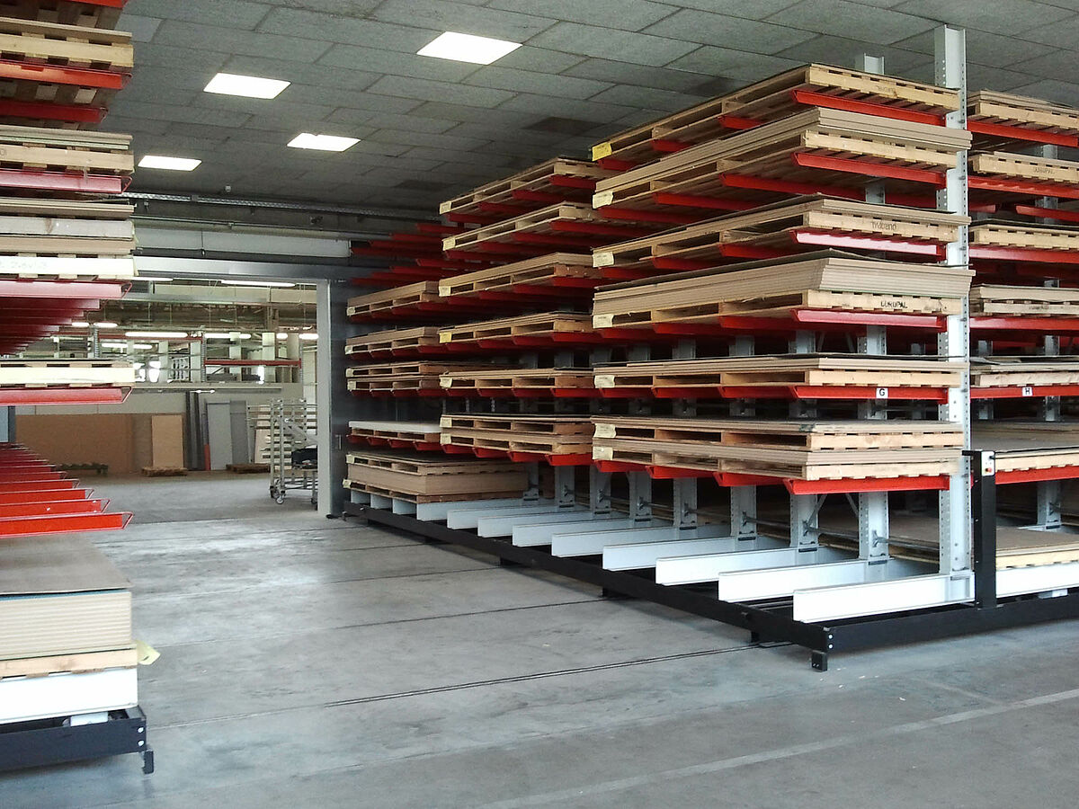 La empresa erform, una de las fabricantes líderes de piezas de postmoldeado para la industria del mueble, modernizó su almacén para tableros revestidos de alto brillo. Para almacenar más eficazmente la mercancía sensible, el almacenamiento en bloque fue reemplazado por un sistema de estanterías cantiléver de la empresa OHRA. Para ello las estanterías están montadas sobre carros desplazables que permiten aprovechar al máximo el espacio en el almacén. Además, ahora se puede tener acceso a cualquier artículo reduciendo claramente el tiempo de picking.