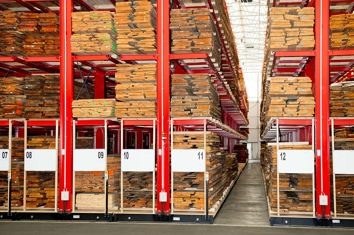 Hechenblaickner ofrece en su almacén central de Graz, el megastore de madera de 20.000 metros cuadrados de superficie, madera aserrada, chapas de madera, tablones de madera maciza y productos semimanufacturados para la construcción de ventanas y puertas. Hasta ahora, la mercancía se apilaba en bloques sobre el suelo. Esto provocaba que, dada la cada vez mayor cantidad de artículos almacenados, la manipulación de la mercancía fuera cada vez más costosa. Con paquetes de hasta seis metros de longitud, más de un metro de anchura y hasta 3.000 kilos de peso, esto llevaba mucho tiempo y, además, la constante manipulación de los artículos de madera almacenados provocaba que estos se dañaran frecuentemente.