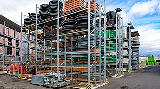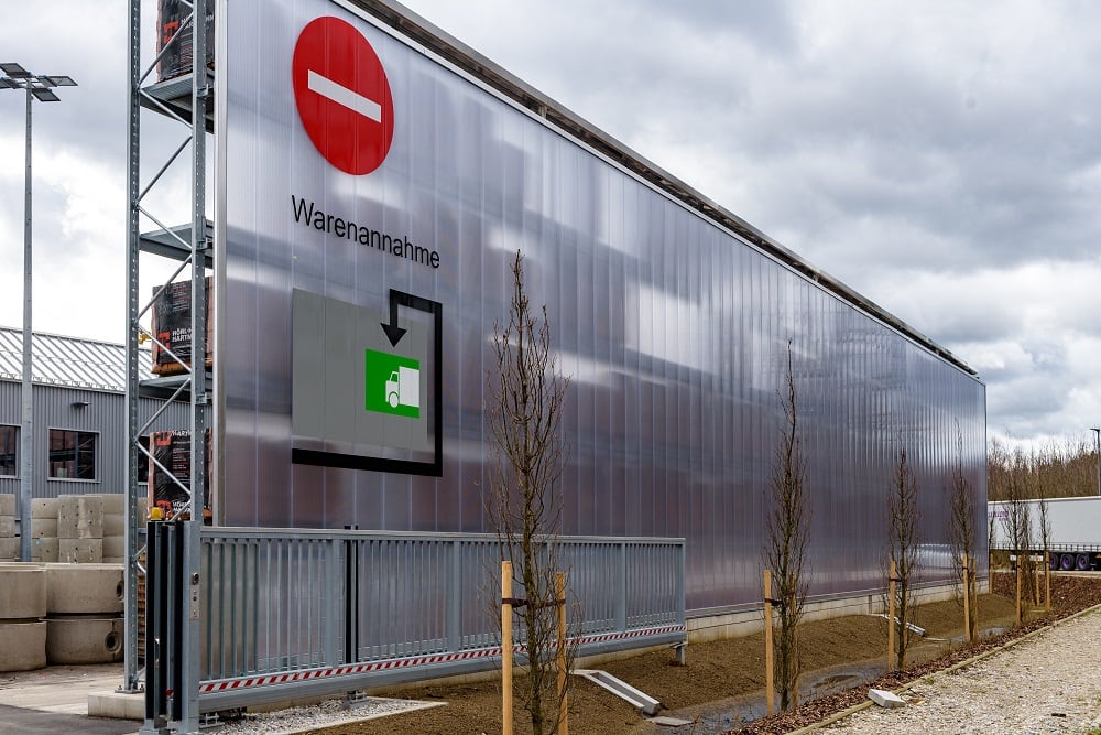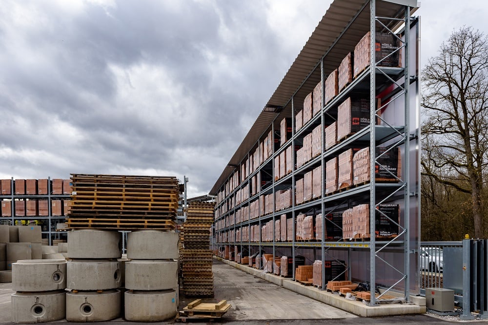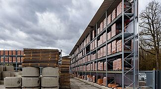 Kraft Baustoffe, según sus propias declaraciones, el mayor comerciante de materiales de construcción de la zona de Múnich a día de hoy, ha construido un almacén al aire libre para su nueva sucursal de Höhenkirchen-Siegertsbrunn con estanterías de paletización y cantiléver de OHRA. Las estanterías no solo tienen tejado, sino que también, dado que se tuvieron que aplicar estrictas normas de aislamiento acústico, también llevan un revestimiento en la pared trasera que sirve como elemento de protección contra el ruido.