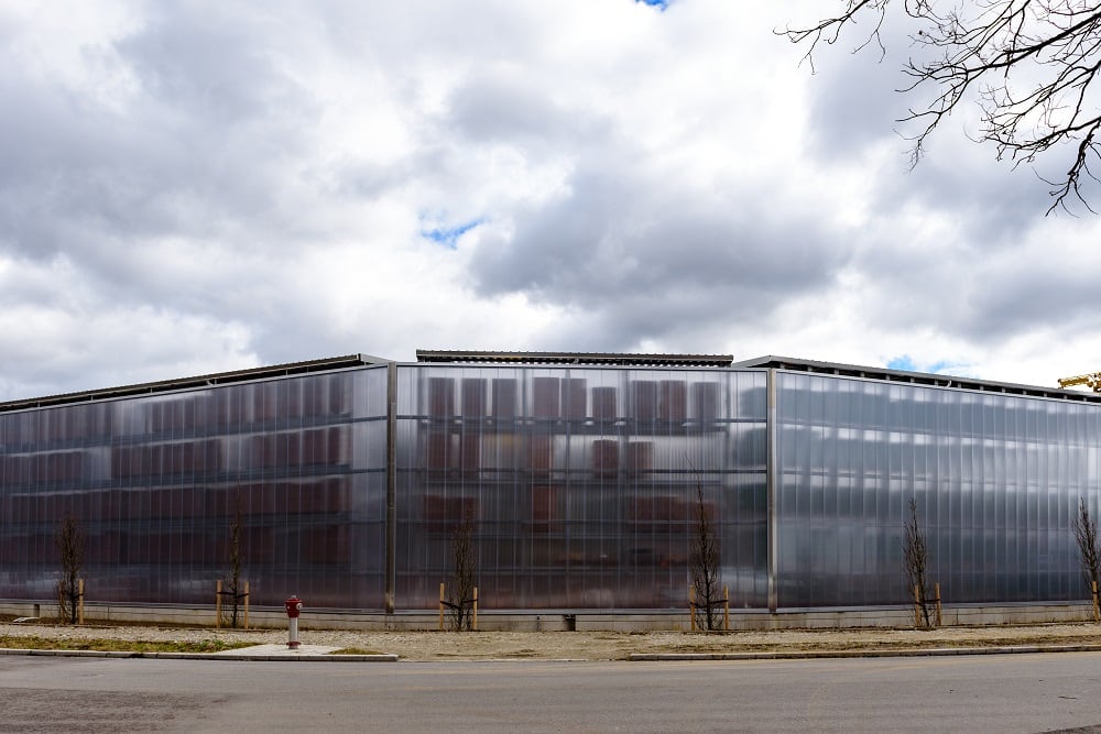 Almacenamiento exterior con techo y aislamiento acústico