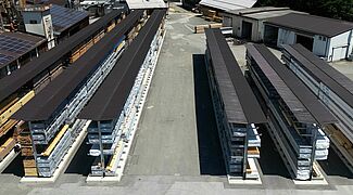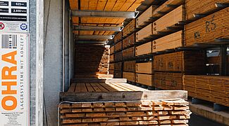 Por ello, Marles decidió sustituir el almacén existente por diez lineales de estanterías cantiléver de OHRA. Las estanterías con una altura de 6.080 milímetros permiten almacenar los paquetes de madera en cuatro niveles y, por tanto, ofrecen una capacidad de almacenamiento significativamente mayor en el mismo espacio. Además, es posible acceder directamente a cada artículo. Un techo integrado de 1,5 metros de profundidad protege la madera almacenada de la intemperie, mientras que las propias estanterías están galvanizadas en caliente.