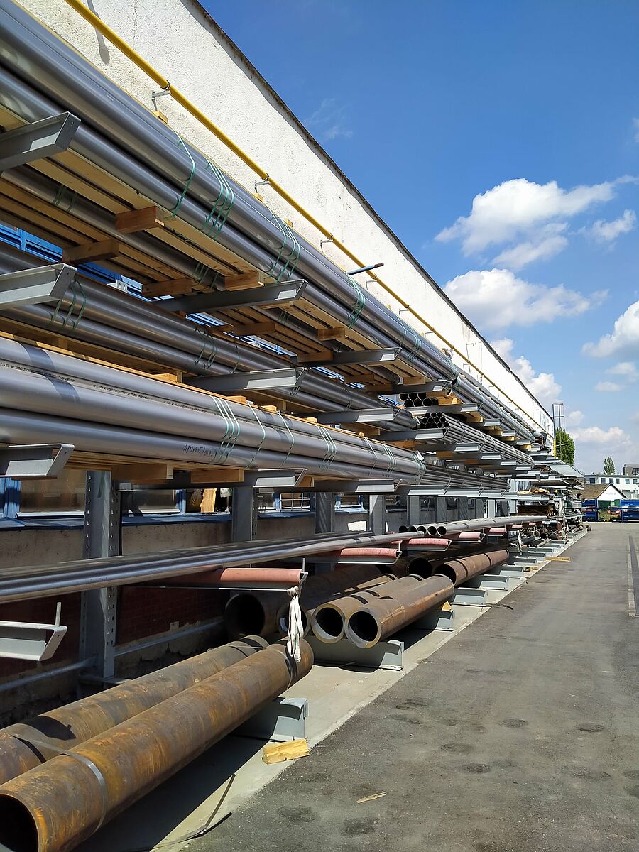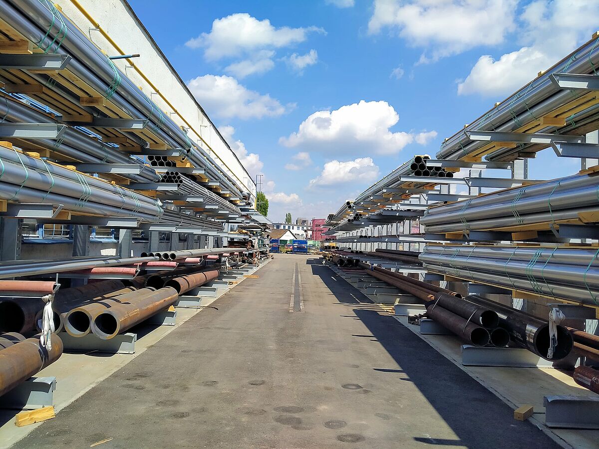 El sistema de estanterías de OHRA convence especialmente por su robustez y estabilidad: OHRA fabrica todos los elementos portantes de las estanterías exclusivamente de perfiles de acero macizos ofreciendo así una alta capacidad de carga con un diseño estilizado. Además, OHRA adaptó las estanterías a las necesidades de Mebatex, para que los diferentes tubos puedan ser almacenados de forma segura y eficiente. OHRA instaló dos lineales de estanterías cantiléver a una sola cara con una longitud total de más de 92 metros en el área exterior.