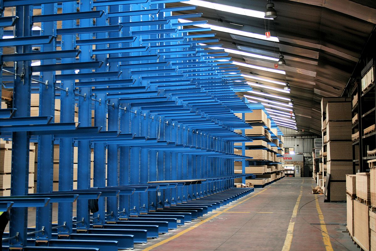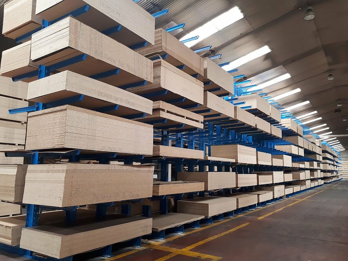 Mediante la instalación de las estanterías OHRA, la empresa no solo ha podido aumentar su capacidad de almacenamiento en un 50 por ciento, sino que, además, las estanterías cantiléver también permiten un acceso directo y rápido a los distintos tableros. De este modo, la preparación de los pedidos en el almacén se ha simplificado y agilizado.