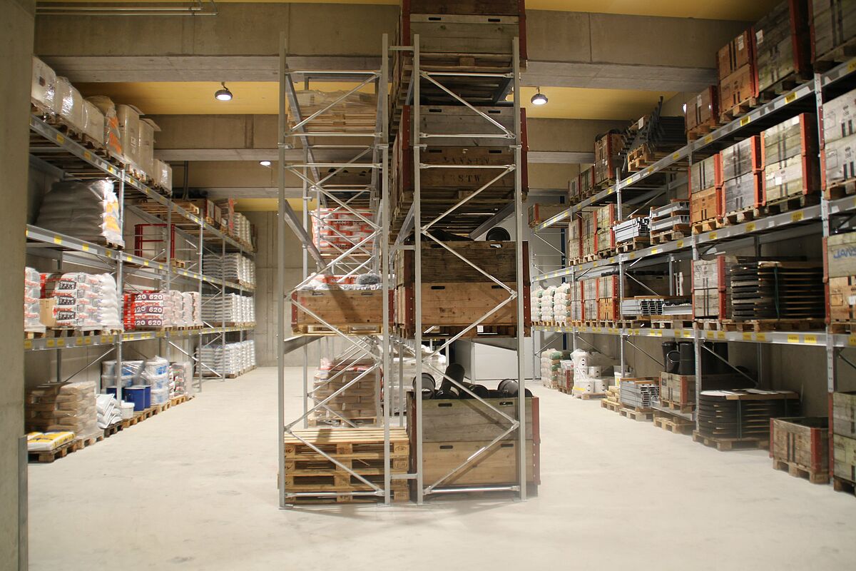 La cartera de productos de Röhrenhandel Appenzell abarca artículos de ingeniería civil, así como edificación, horticultura y productos de hormigón en general. Asimismo, los constructores podrán encontrarán una amplia gama de herramientas y ropa de trabajo. Para el almacenamiento de los diferentes artículos, la empresa decidió instalar una combinación de estanterías cantiléver y de paletización de OHRA, parte de las cuales se encuentran en una nave y parte en el exterior. El nuevo almacén ofrece espacio para aproximadamente 1.000 europaletas y se opera mediante transpaletas y carretillas elevadoras.