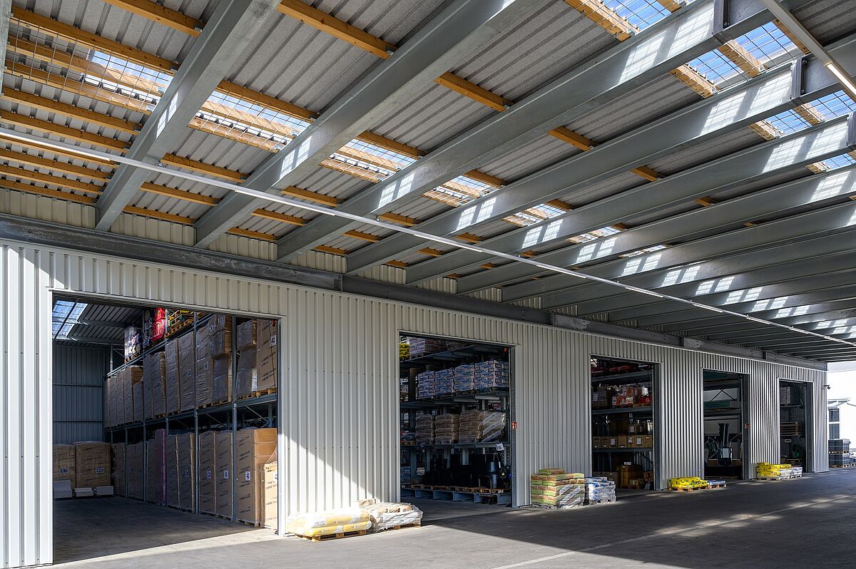 En 2013, OHRA construyó la primera nave autoportante en el recinto de hagebaumarkt como nave de drive-in. Para hacer frente al creciente número de clientes (particulares y especialistas) y poder almacenar una gama aún mayor de artículos especializados para profesionales, la empresa decidió construir una segunda nave autoportante con un diseño similar. La nave, de unos 43 metros de largo y 21 de ancho, se construyó sobre la base de seis lineales de estanterías. Sus columnas de ocho metros de altura sostienen la construcción del techo, así como los muros exteriores. OHRA construyó la nave aislante como una extensión con elementos de techo y pared aislados y de 60 milímetros de grosor.