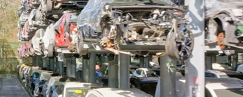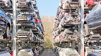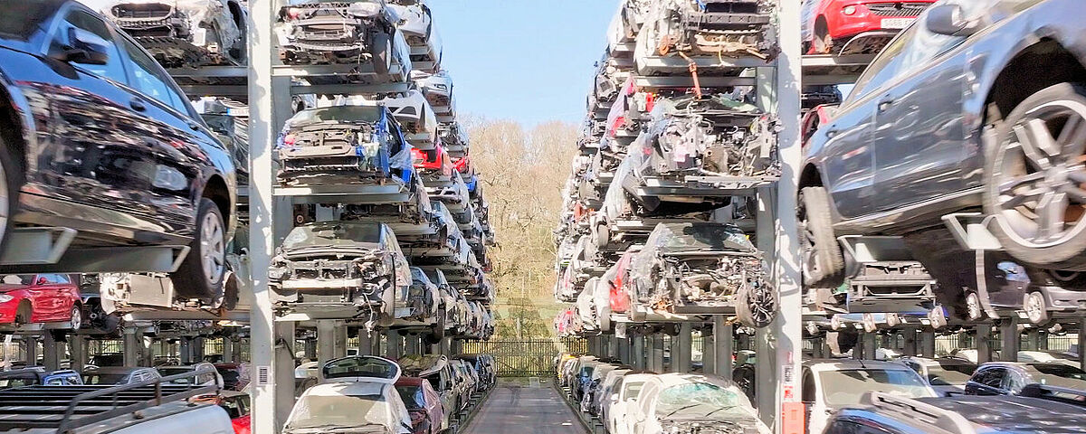 Con el fin de tener siempre a su alcance el mayor número posible de vehículos fuera de uso, Silverlake Automotive Recycling, con sede en Hampshire, Reino Unido, almacena turismos, SUV y furgonetas en estanterías cantiléver de OHRA. Gracias a las estanterías de más de 8 metros de altura, se pueden «apilar» de forma segura cinco vehículos en altura de hasta 2 toneladas cada uno. Los lineales de estanterías están equipadas además con guías, de modo que los vehículos fuera de uso pueden introducirse y retirarse con una carretilla elevadora de carga lateral. De este modo, los pasillos entre las estanterías son especialmente estrechos y se pueden colocar más estanterías en una superficie mínima. Silverlake puede almacenar alrededor de 2500 vehículos usados en sus instalaciones.