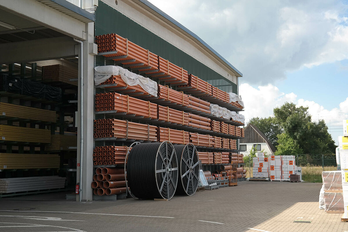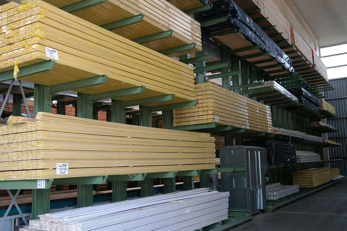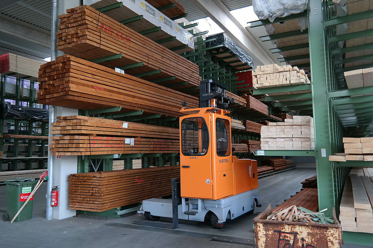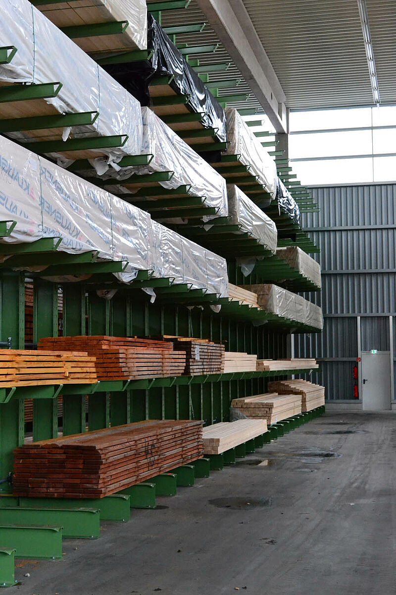 Hasta ahora el centro de construcción almacenaba los materiales en un almacén en bloque techado sólo parcialmente. Aparte de eso, las maderas de hasta 13 metros de largo se almacenaban en una estantería en el exterior. Pero las capacidades de almacenamiento bajo techo eran sólo escasas y la madera quedaba en parte expuesta a las condiciones meteorológicas. Al transportar las mercancías en el almacén de bloque los productos siempre resultaban dañados.