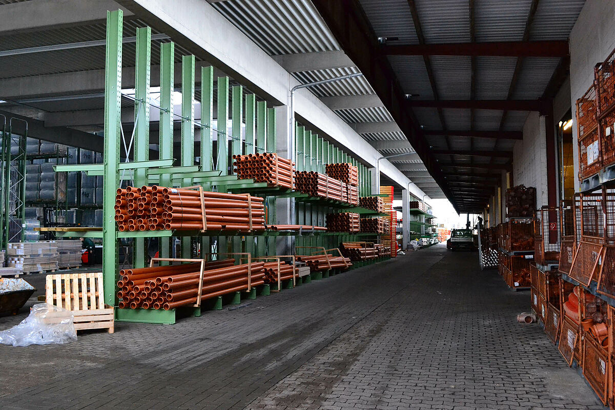La empresa teambaucenter en Eggebek, líder en los sectores de comercio de materiales y materiales de construcción de Alemania del Norte pudo aumentar claramente la calidad del almacenamiento de sus mercancías con una nueva planta de almacenamiento. Ahora los productos están protegidos de las condiciones meteorológicas. Las estanterías cantiléver y para palés fabricadas a medida para los diferentes artículos por la empresa OHRA, especialista en almacenamiento de Kerpen, reducen los daños en la mercancía almacenada.