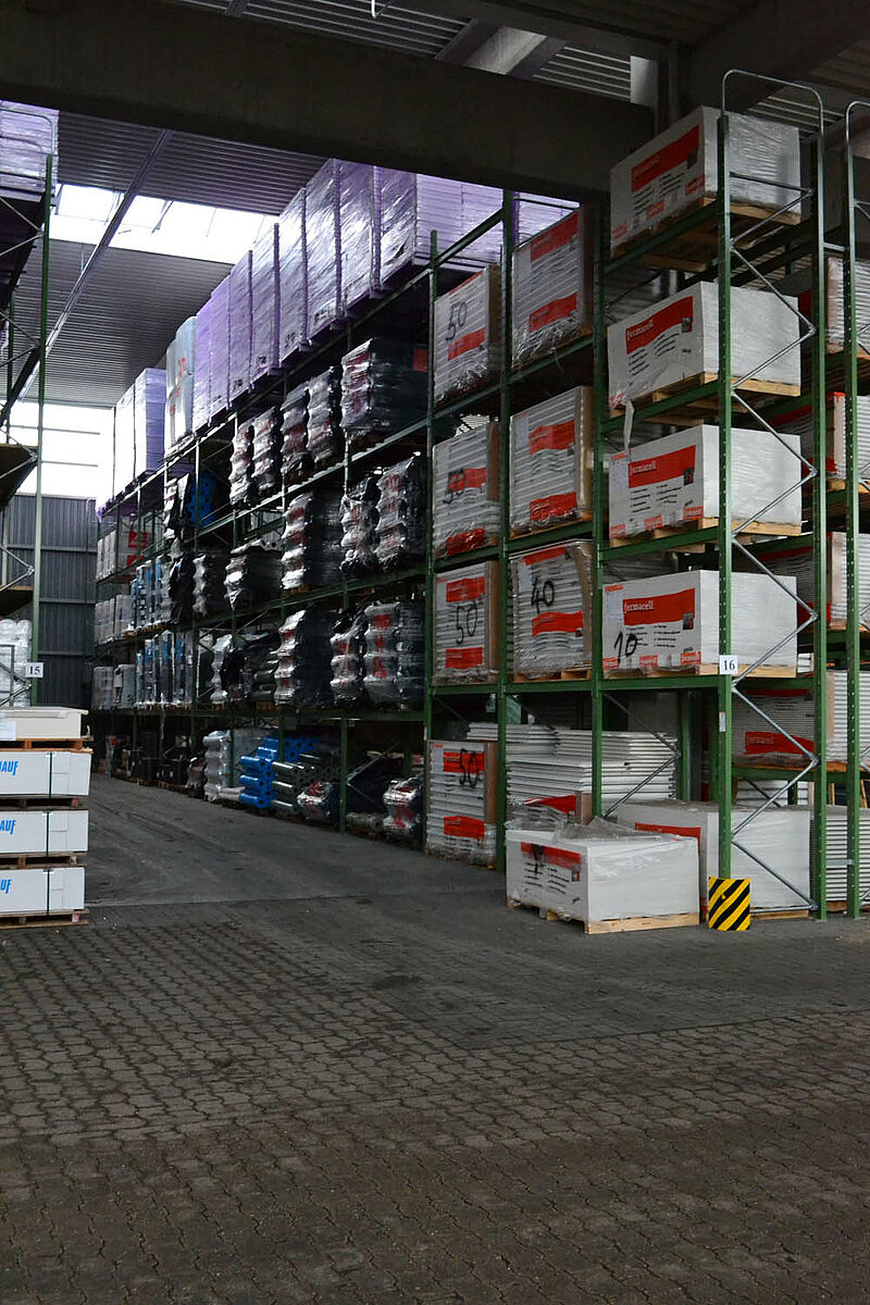 Por eso, teambaucenter decidió mejorar la calidad de almacenamiento con una nueva planta para almacenamiento. La planta ofrece más espacio para un surtido más amplio de mercancías y permite la reunión de todo el surtido, siendo esto la base para caminos cortos en la preparación para la entrega. Pero sobre todo con la nueva planta ahora se pueden almacenar más mercancías bajo techo y también la carga y descarga de los camiones se realiza de forma protegida contra las condiciones meteorológicas.