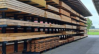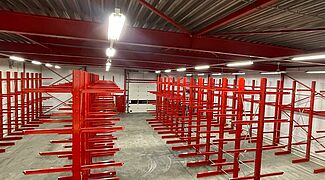 Debido a la experiencia positiva que van Deuveren ya conocía de las estanterías de OHRA, la nueva sede de la empresa también se equipó con estanterías del líder del mercado europeo de estanterías cantiléver. OHRA fabrica los pilares de las estanterías y los brazos de las estanterías cantiléver con perfiles de acero de alma maciza IPE laminados en caliente, de modo que las estanterías cantiléver permanecen estables incluso cuando se utilizan al máximo y garantizan un alto nivel de seguridad para el personal y los clientes. OHRA siempre fabrica las estanterías a medida según los deseos del cliente: en van Deuveren, esto se aplica no solo a las dimensiones y capacidades de carga, sino también al color.