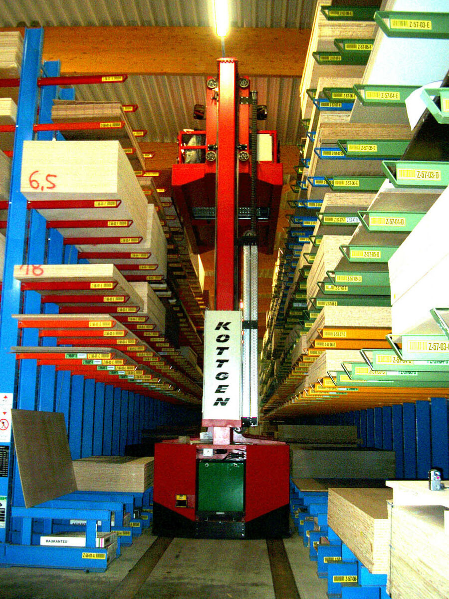 En la industria del mueble y de la madera, un almazenamiento bien organizado para mercancias gruesas y tableros pesados es de gran importancia. Para el flujo de la mercancia es importante tener todo ordenado. Ya en la entrada la materia prima, los tableros aglomerados y la madera estarán ordenados en base a sus medidas y sus funciones.