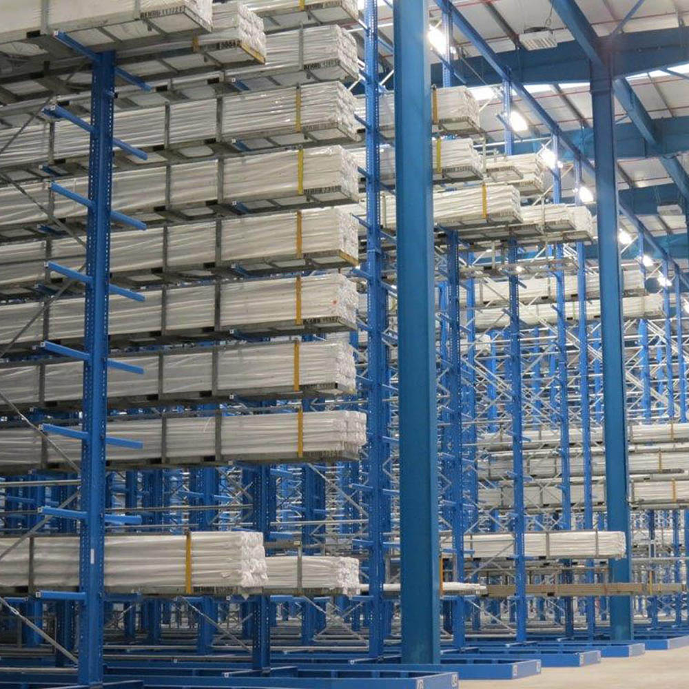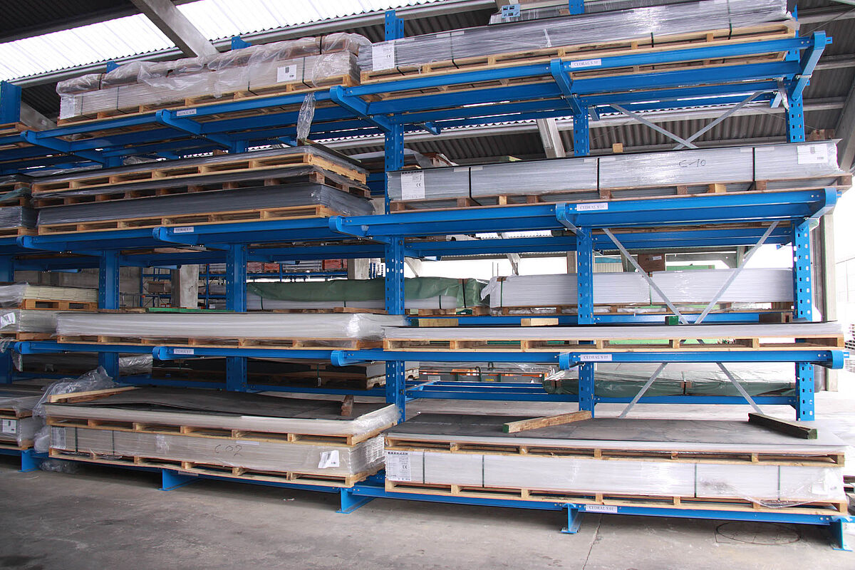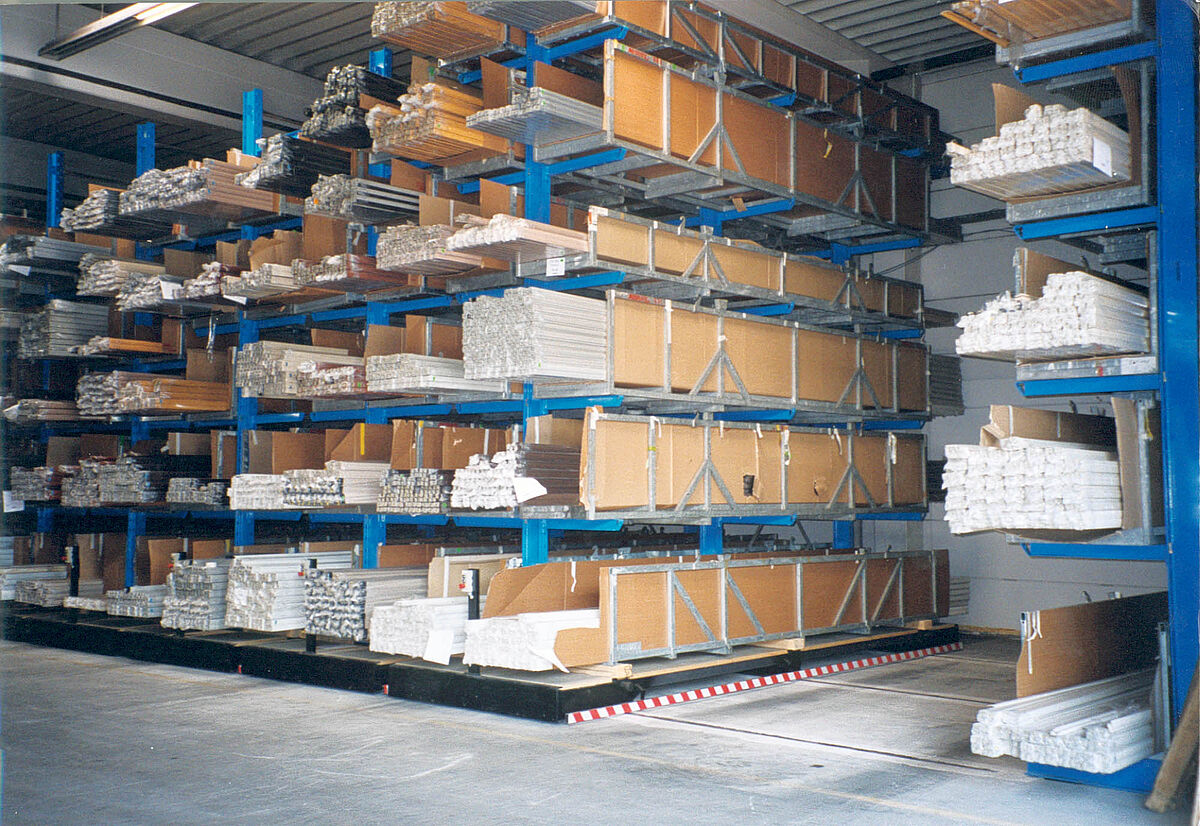 Para el almacenamiento de aluminio y plástico, las estanterías cantilever son la solución de almacenamiento ideal para los productos largos de cualquier forma, longitud o calidad. Perfiles de aluminio y plástico, tubos y placas de PVC, tubos de bajada, marcos de ventana, canalones y otros materiales largos se pueden almacenar y desalmacenar con esto sistema de estanterías que ocupa poco espacio.