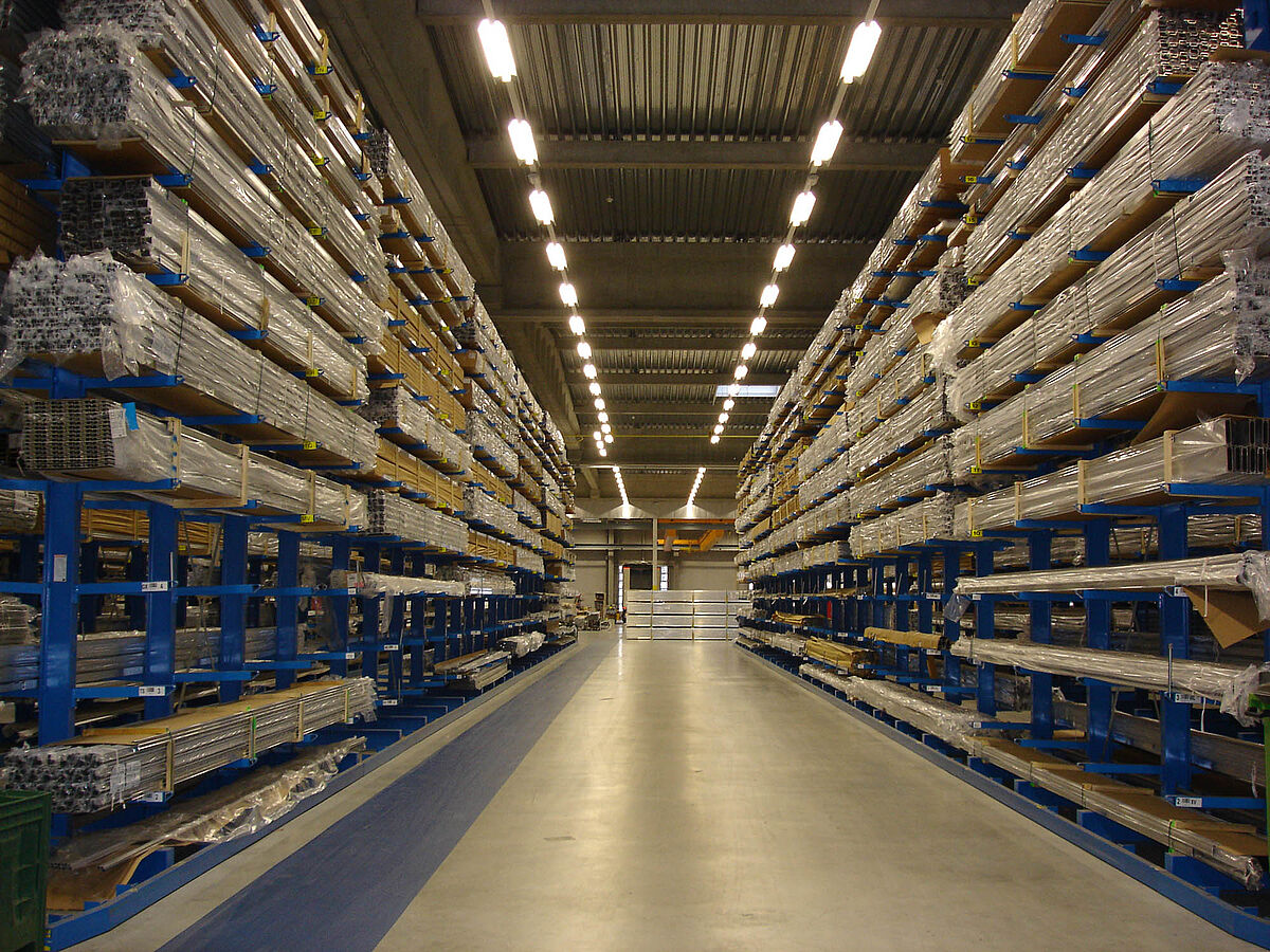 Almacén para artículos largos: perfiles de ventanas de aluminio