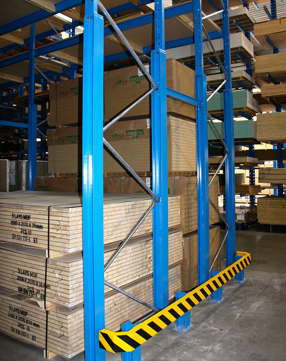 El acero laminado en caliente de nuestros estantes es elástico y mantiene sus ventajas sobre la alta capacidad de carga vertical. Otras estanterías para paletas son de acero laminado en frío con un espesor de 2 mm, el cual no es elástico, cuando sufren golpes suaves, pueden doblarse rápidamente perdiendo sus valores portantes. Para ofrecer una capacidad de carga óptima de los estantes para cargas con paletas de carga pesada, utilizamos acero laminado en caliente especialmente en los soportes del marco.