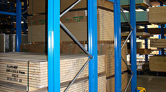Para cargas livianas y de peso mediano (hasta 3.000 kg de carga por compartimento) se pueden usar estanterías de paletización OHRA P5, más económicas. También en las ubicaciones con pasillos guiados por railes para la circulación de carretillas, los requisitos para los estantes robustos son menores. Nuestros bastidores de estanterías de chapa de acero optimizada y nuestros largueros cumplen con los requerimientos estáticos de una estantería para paletas versátil y segura.