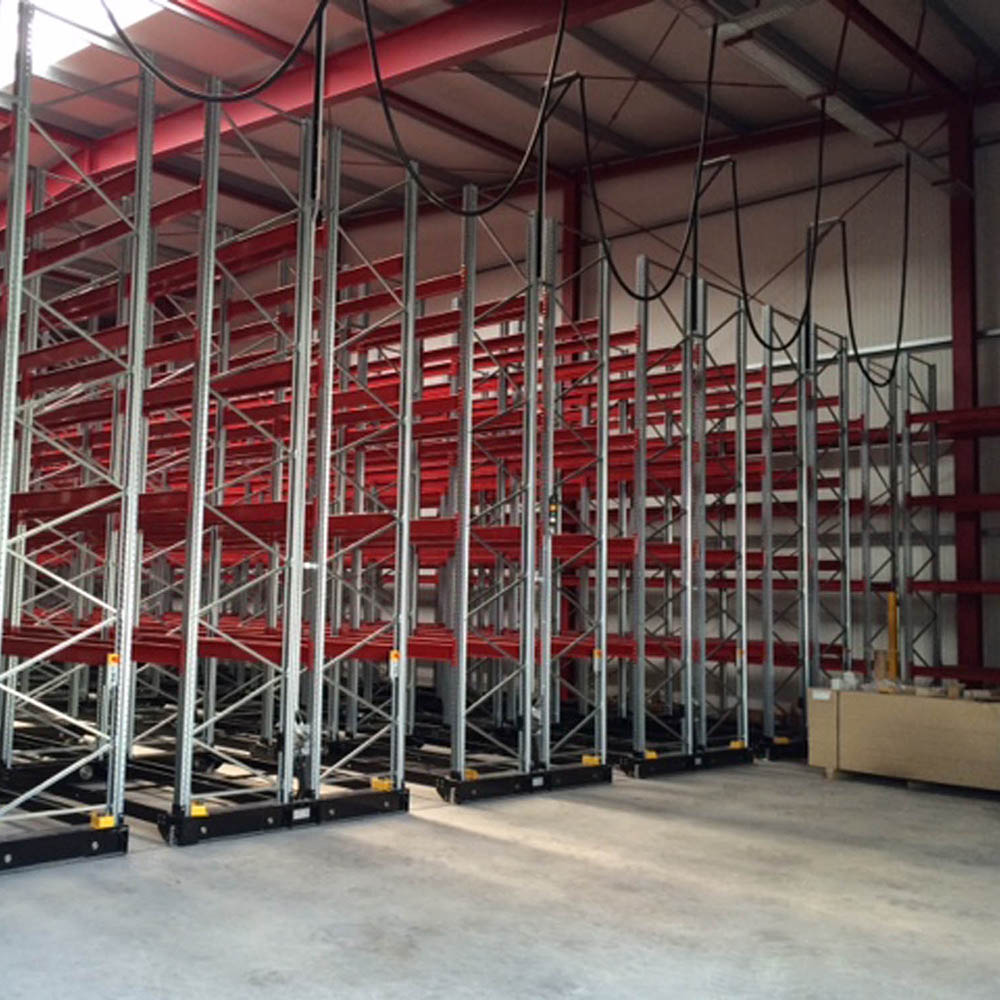 Las estanterías desplazables para paletas, son instalaciones de estanterías dinámicas adecuadas para productos paletizados, los cuales se tienen que almacenar de modo compacto sobre una pequeña superficie. En este sistema de almacenamiento se montan las estanterías robustas de paletas sobre carros desplazables a prueba de torsión. Toda la línea de estantes se mueve, por medio de control electrónico o manual, como una unidad de estantería. Los carros desplazables se mueven sobre rieles, los cuales se pueden montar como una construcción nueva, pero también sobre suelos existentes. De ahí que sólo se necesite un pasillo operativo para cada bloque de estanterías para paletas. Esto genera un gran aprovechamiento del área, ya que solamente está abierto el paso por donde se almacenan y se dispensan los productos del estante.